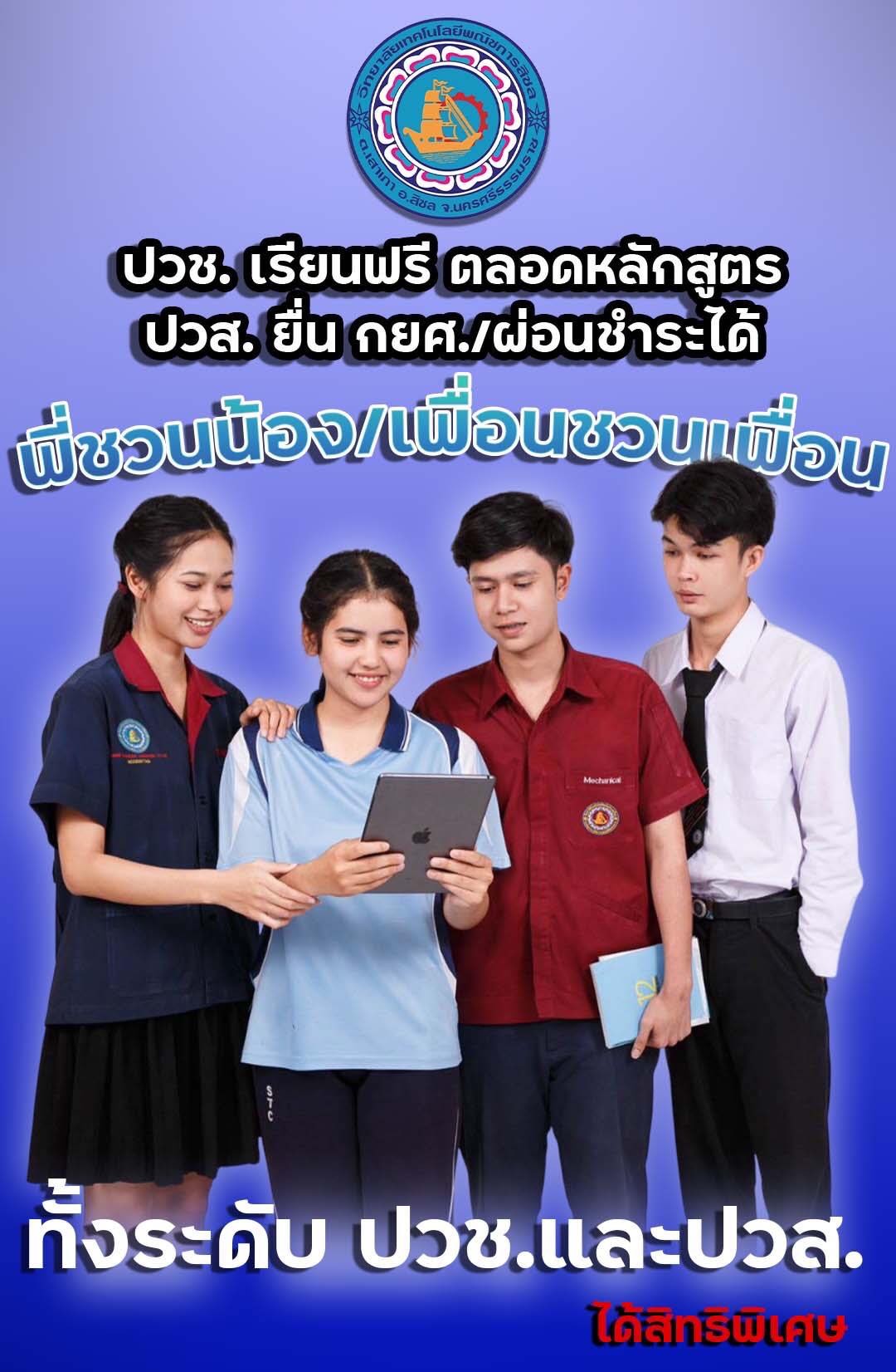 วิทยาลัยเทคโนโลยีพณิชยการสิชลเปิดภาคเรียนที่ 1 ปีการศึกษา 2569 ในวันจันทร์ที่ 18 พฤษภาคม 2569