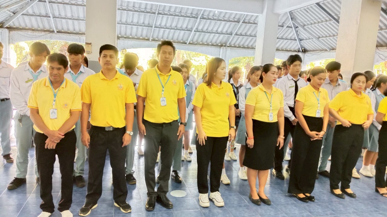 ผู้บริหาร คณะครู บุคลากร และนักเรียนนักศึกษา เข้าร่วมพิธีวางพานพุ่ม ในวันที่ 28 กรกฎาคม 2568
