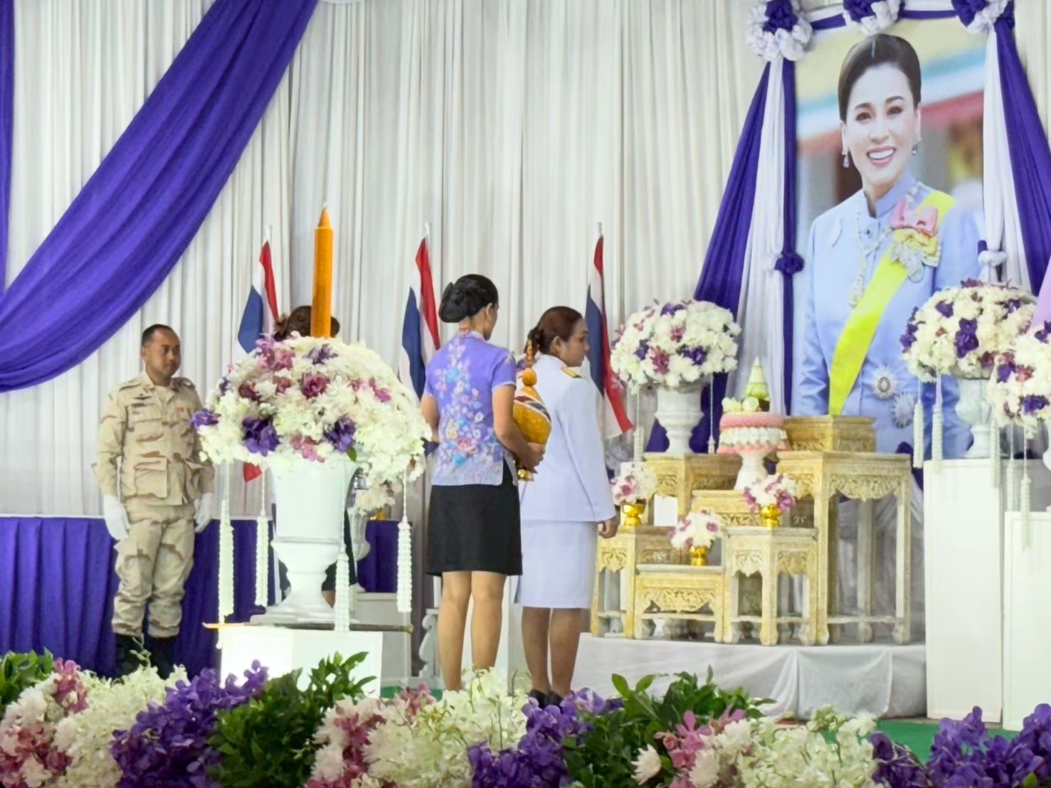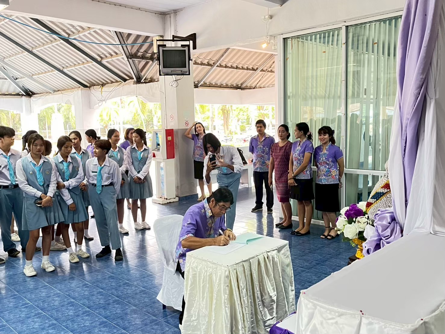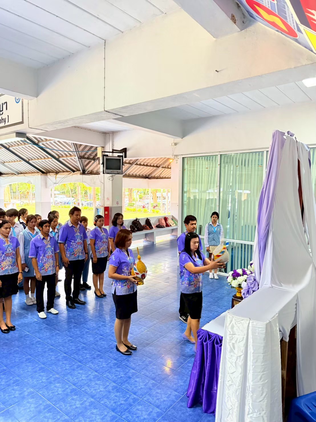 ผู้บริหาร คณะครู บุคลากร และนักเรียนนักศึกษา เข้าร่วมพิธี พิธีถวายเครื่องราชสักการะและวางพานพุ่ม เนื่องในโอกาสวันเฉลิมพระชนมพรรษา สมเด็จพระนางเจ้าสุทิดา พัชรสุธาพิมลลักษณ พระบรมราชินี 3 มิถุนายน 2568 |