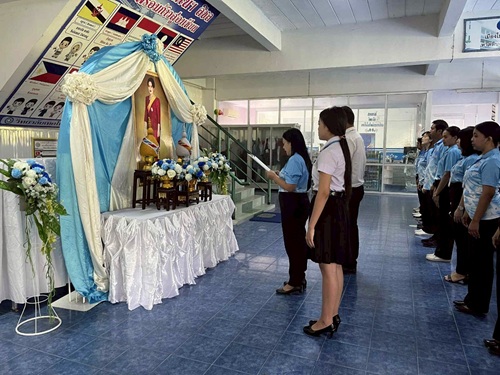 ผู้บริหาร คณะครู บุคลากร และนักเรียนนักศึกษาเข้าร่วมพิธีถวายเครื่องราชสักการะและวางพานพุ่ม จุดเทียนชัยถวายพระพรชัยมงคล เนื่องในวันเฉลิมพระชนมพรรษาของสมเด็จพระนางเจ้าสิริกิติ์ พระบรมราชินีนาถ พระบรมราชชนนีพันปีหลวง 12 สิงหาคม 2568 |
